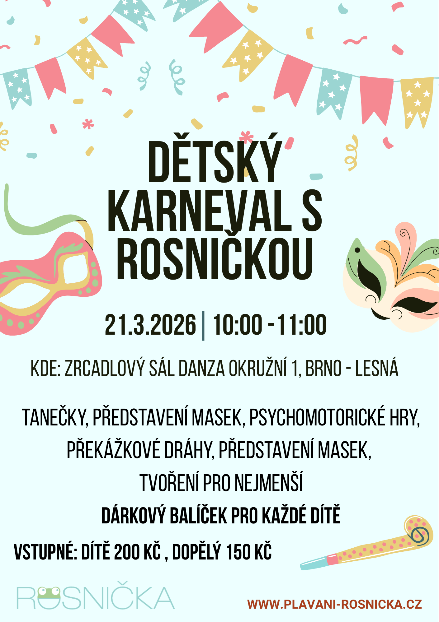 Přijďte s námi prožít veselé jarní dopoledne a užít si barevný rej masek. Na sobotu 21. 3. chystáme v zrcadlovém sále TŠ Danza karneval pro děti i dospělé.